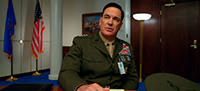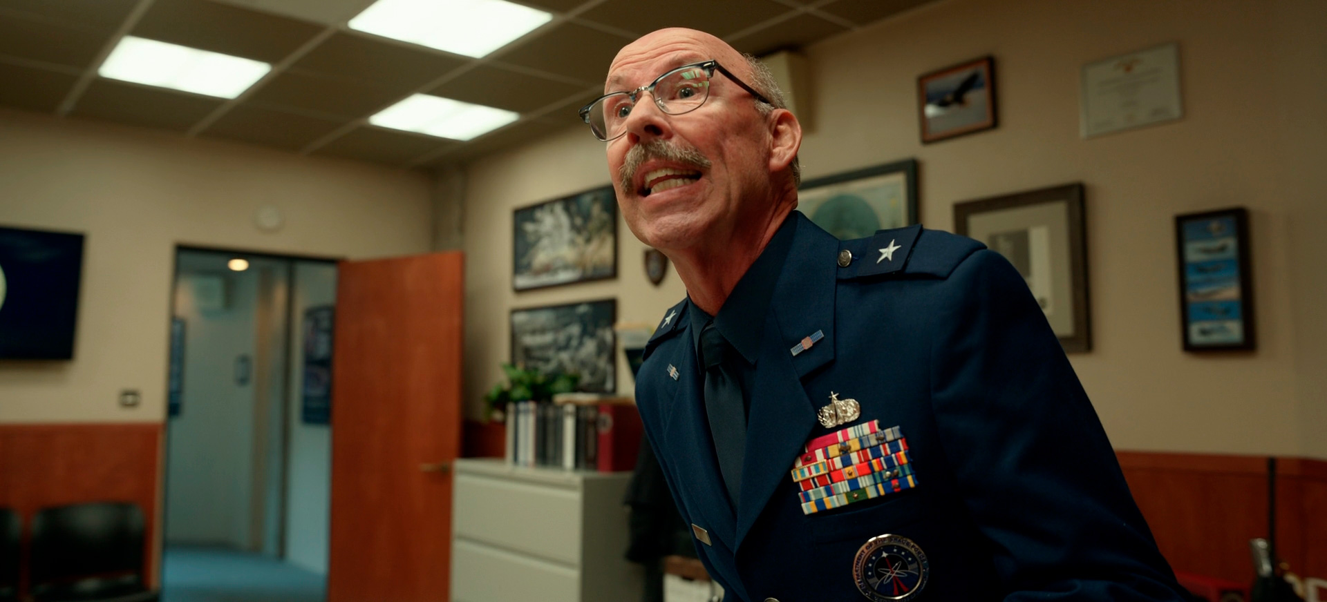 Кстати, примерно из той же серии секретарь Марка генерал Брэд Грегор, которого сыграл Дон Лейк. Секретарь вроде совсем не буффонадный, но при этом очень смешной: как он аккуратно и методично не справляется со своими обязанностями, как он участвует в жизни космических войск, какие советы он дает Марку. Хороший персонаж, понравился.
