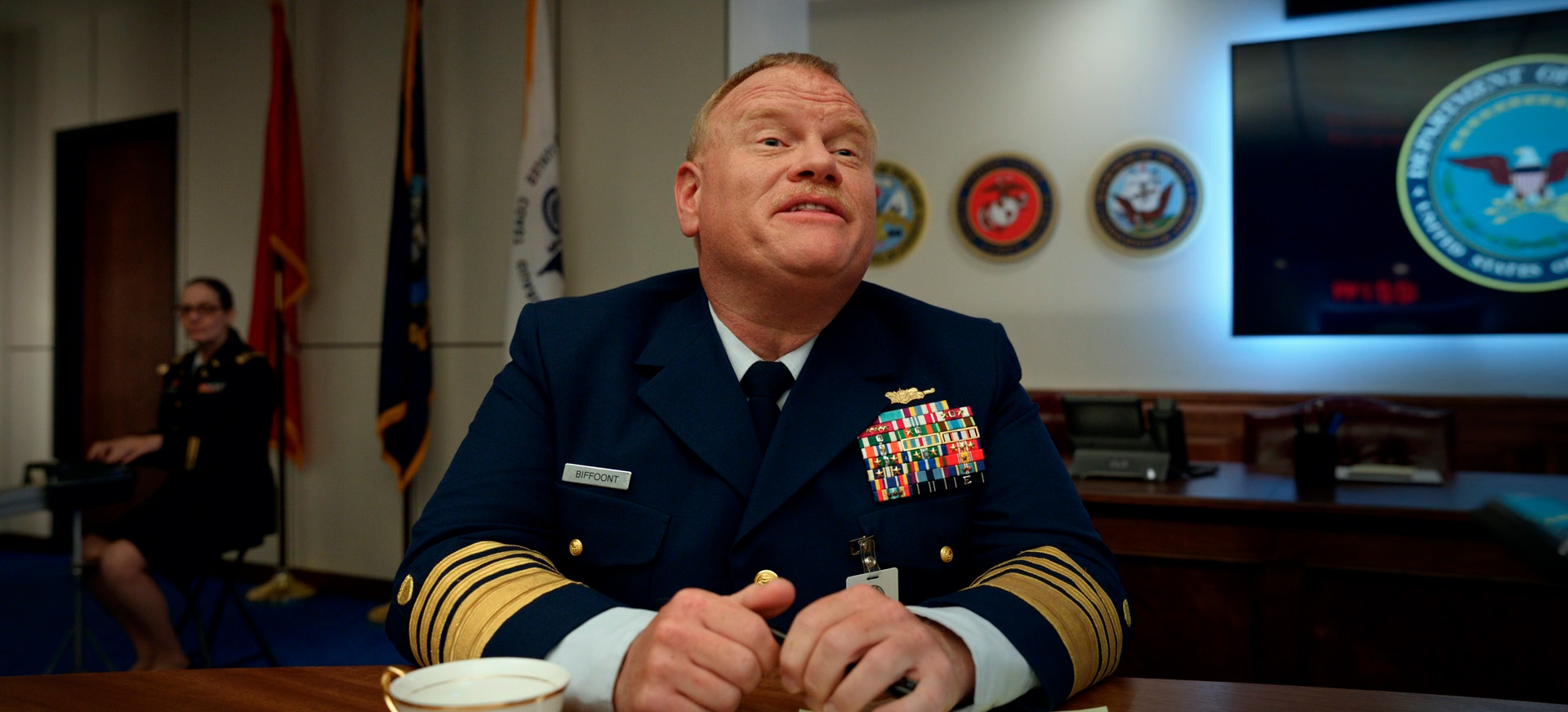 Однако тут просто так задумано. Это, конечно, сатирическая комедия, но это не буффонадная комедия, как "Офис" или "Парки и зоны отдыха", здесь немало достаточно тонких и интересных аспектов человеческих взаимоотношений, а Марк Нэрд, в отличие от остальных персонажей командования, вовсе не тупой солдафон. И это совсем не Майкл из "Офиса".