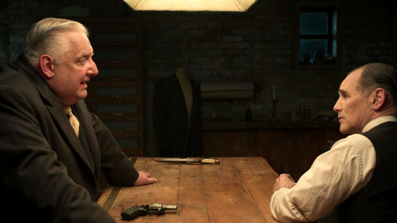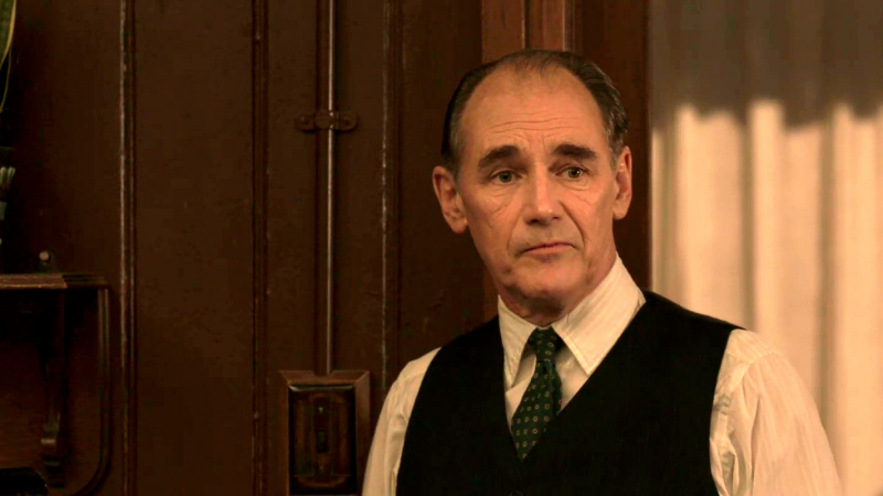 И Райлэнс ее сыграл просто блестяще! Вроде бы такой тихий, мало чем примечательный усталый человек, явно боящийся иметь дело со всем этим бандитьем, однако при этом понятно, что незаметный портной - очень непрост, и кто там знает, что он думает обо всем происходящем. И когда Берлинг попадает в смертельно опасную ситуацию, при которой его в любой момент могут захотеть пристрелить самые разные люди, он вроде как находится в полном отчаянии, однако не сдается, а находит варианты как-то разрешить проблему.