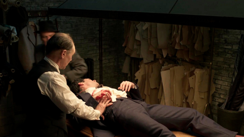 Когда зрителям показывают то, что в ателье то и дело заходят какие-то темные личности в отличных костюмах, которые, ни с кем не здороваясь, кладут конверты в специальный ящик-сейф, запертый на замок, мы понимаем, что спокойствие и безмятежность этому заведению явно не светят.