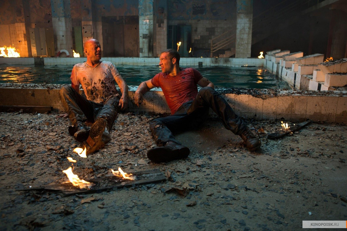 - Легко! Они придумали супер-пупер моющее средство, которое смывает всю радиацию, персонажи боевика снимают костюмы (нафига спросить, мы приглашали звездных актеров) и начинается ЧУКАЛОВО! Уиллис с сыном в финальной сцене падают в бассейн с водой…