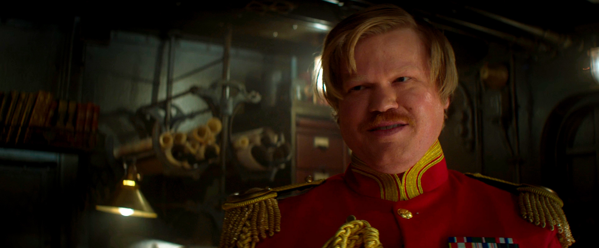 Отдельно порадовали некоторые второстепенные персонажи. Джесси Племонс совершенно самозабвенно оттягивался в роли немецкого принца Иоахима (а ведь он и правда похож на немца), разговаривал с очень забавным немецким акцентом, и этот принц был вот просто очень забавный! А уж когда его высочество эффектно шарашили из двух стволов пулеметов, установленных на подводной лодке его высочества, под "Полет валькирий" Вагнера - это было просто прекрасно!