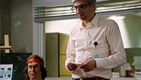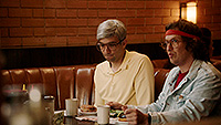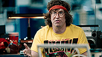 И он намеренно утрирует типажи основных персонажей. Лазаридис у него такой гениальный техногик, который хорошо знает, как между собой общаются смартфоны и компьютеры, но с обычными людьми у него нормальное общение наладить не получается. Даг Фрегин - и вовсе какой-то Питер Пэн, навсегда оставшийся в своем игровом детстве и не желающий взрослеть, причем в чем вообще состояла его роль в компании (в фильме, подчеркиваю) - непонятно. А, он объявлял о Movie Night и организовывал киновечера - видимо, в этом была его главная роль.