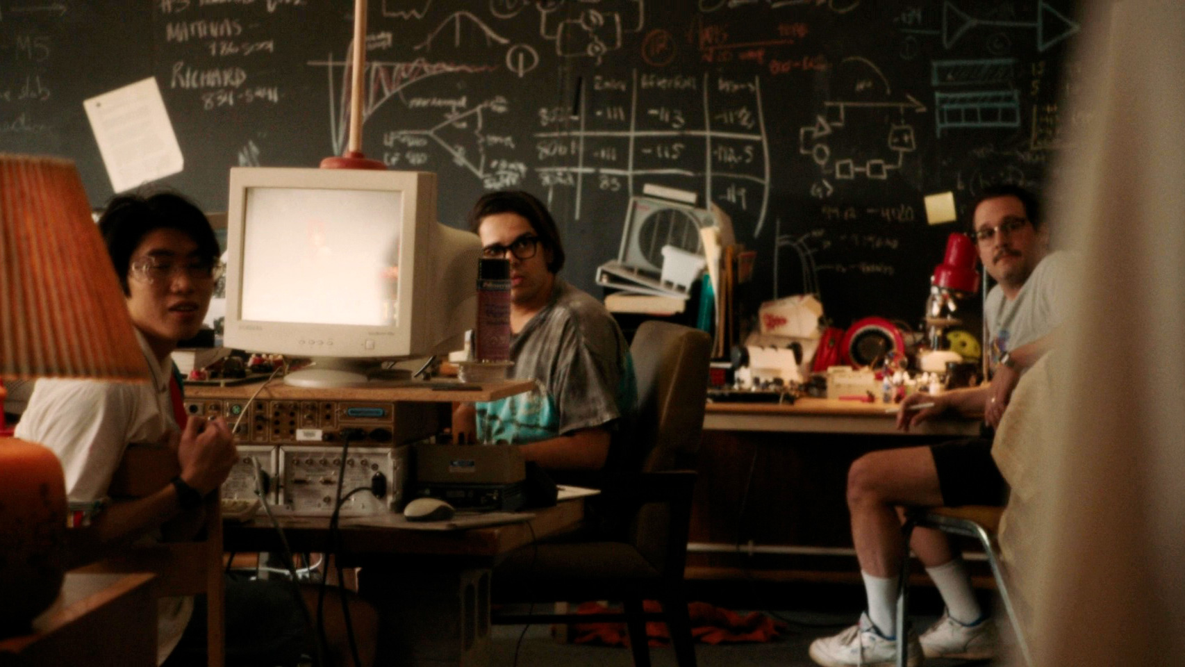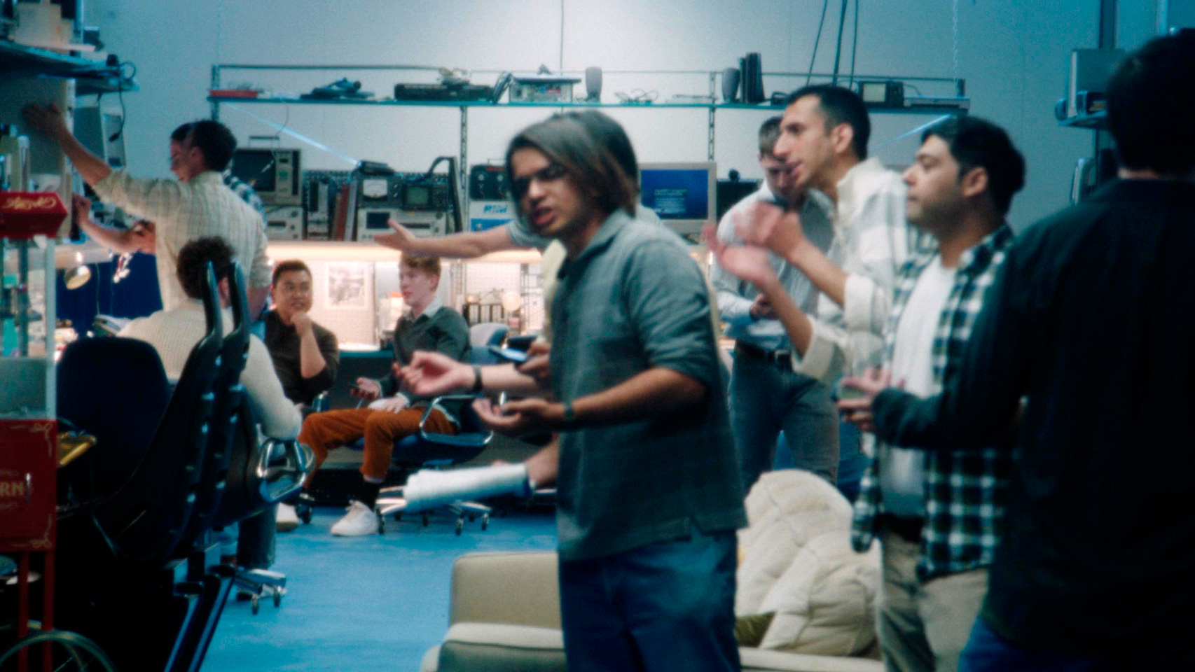 Процесс резкого укрупнения компании режиссером показан достаточно своеобразно. То же помещение, те же гики, та же обстановка легкого дурдома, но зато Майк внезапно окрутел, и уже больше не напоминает того самого техногика: теперь это содиректор крупнейшей компании.
