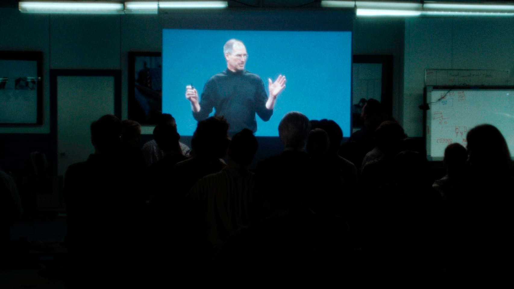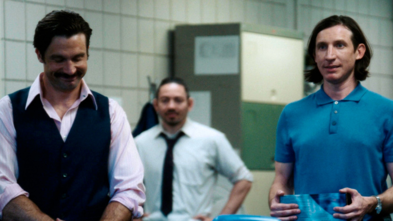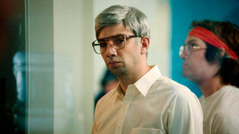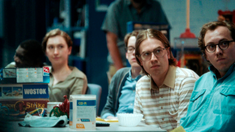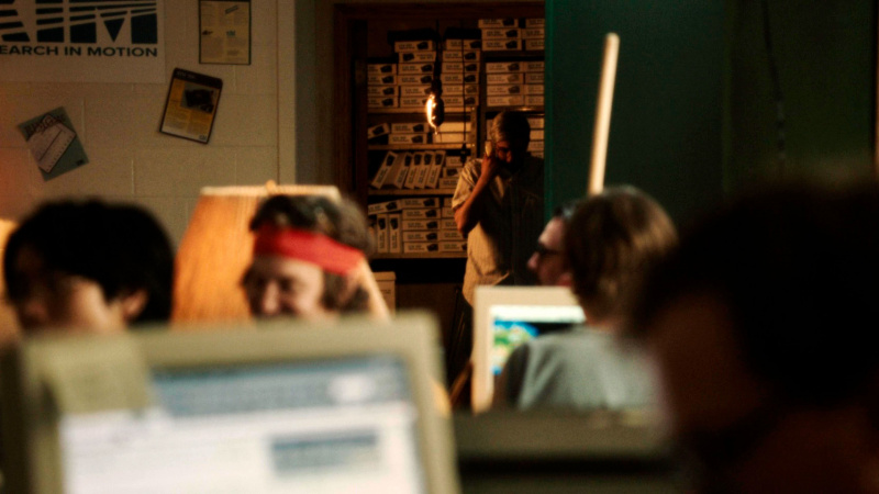 Поставлено это именно в стиле мокьюментари: ручная камера, следящая за происходящим и как бы выхватывающая время от времени тех или иных персонажей - это прямо-таки напоминает ситкомы типа "Офис" или "Парки и рекреации". Какие-то критики ставят подобный стиль режиссеру в вину - мол, а где уверенная и суровая постановка в стиле "Социальной сети", ведь это просто дурачество какое-то? Но нет, это не дурачество, это просто стиль такой, присущий данному режиссеру. Он же не делает реконструкцию того, как это все происходило, там более что, судя по всему, ему это просто неинтересно, он на примере BlackBerry рассказывает собственную историю.