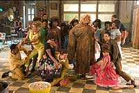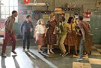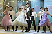 Но сатира, во имя которой в своих ранних фильмах Уотерс пользовался весьма своеобразными средствами выражения, в "Лаке для волос" все-таки стоит несколько на втором плане. На первом плане - веселые шестидесятые: пышные платья и пышные прически девочек, обуженные костюмчики и набриолиненные коки и чубчики мальчиков, твист, ранний рок-н-ролл, танцы, песни и атмосфера царящих перемен. Я этот фильм смотрел: он милый, симпатичный и веселый, а Рики Лэйк, играющая Трейси, при своих пышных формах танцует просто потрясающе.