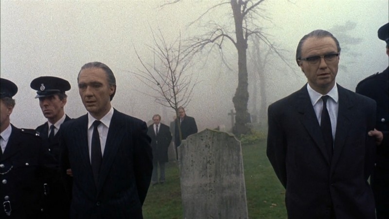 Братья Крэй на похоронах своей матери Вайолет. Это, кстати, была известная история, которая отражена в старом фильме, и о ней нет ни слова в новом фильме. Вайолет очень влияла на близнецов, она очень много значила в их жизни. В фильме Хелгеленда она была показана просто очень заботливой мамочкой, любящей обоих братьев, но в первом фильме ее роль была намного более значительной.