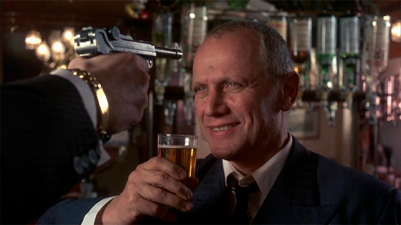 Того самого Джорджа Корнелла в том фильме сыграл колоритный актер Стивен Беркофф. Это как раз сцена, когда Корнелла в баре убивает Ронни.