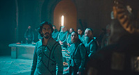 Но подойдем уже к главному - к визуальному воплощению этого фильма. А оно действительно выдающееся. Режиссер воспользовался сюжетом старой поэмы для того, чтобы поразительно здорово визуализировать различные эпизоды этой истории. Костюмы, игра со светом и тенью, визуальные образы, работа художников по костюмам, операторская работа (Эндрю Дроз Палермо), переменчивые пейзажи, переменчивые состояния сознания Гавейна - это прямо-таки здорово сделано, я прям впечатлен.
