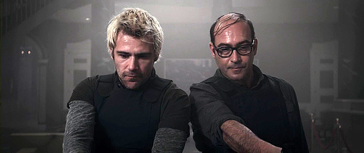 В этот момент в банк врывается группа профессиональных грабителей под руководством взрывника Дэрриена (Мехи Пфайфер). В банду также входит старый подельник Дэрриена Уайнстин (Джон Вентимилья) и молодой хакер-британец Гейтс (Мэтт Райан).