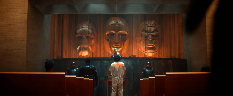 Сериал "Локи" - разнообразный и разножанровый. "Управление временными изменениями" в первой серии - нечто очень забавное и явно сатирическое: забюрократизированная вусмерть организация с практически безэмоциональными работниками, равнодушно выполняющими свои служебные обязанности, карикатурные суды над "вариантами" и смертные приговоры, которые мгновенно приводятся в исполнение. Одновременно напоминает вогонов, космических бюрократов из "Автостопом по Галактике", и причудливые офисы "Бразилии" Терри Гиллиама.