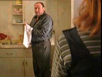 Правда, когда Ник в исполнении Гэндольфини вдруг совершенно неожиданно запел - мы с Бубликом нервно икнули, но потом выяснилось, что музыкальные номера в этом фильме не только отлично подобраны, чтобы создать соответствующее настроение, но и великолепно сняты: актеры, как правило, не просто поют классические хиты Хампердинка, Спрингфилда, Спрингстина, Джина Эммонса, Джеймса Брауна, но и как бы разыгрывают соответствующую песню, как, например, в совершенно изумительном эпизоде, когда Бо-Уокен поет "Делайлу" Тома Джонса, преподнося это как историю из своей жизни. Ну а уж финальный вопль Ника-Гэндольфини, когда ему делают обрезание, в песне "Я всего лишь пленница любви" - этого мы с Бубликом не забудем никогда.