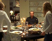 Если бы я до этого не видел никаких фильмов Нэнси Мейерс, то я бы долго и нудно удивлялся весьма своеобразному построению этой картины: живенькая и вполне забавная первая треть, совершенно невнятная вторая треть и чудовищная последняя треть с этим до предела дурацким хэппи-эндом. Однако я смотрел "Чего хотят женщины", поэтому знаю, что у Нэнси это фирменный стиль. Она находит весьма неплохую идею, начинает ее разрабатывать, а потом сама перестает понимать, что же, собственно говоря, она снимает, после чего превращает неплохую комедию в сборник штампов из дамских романов для очень умудренного возраста, а в финале повозка с фильмом аккуратно заваливается набок в канаву, причем все это действо сопровождается слезами и соплями, взлетом розовых и оранжевых воздушных шариков, дружескими объятиями, поцелуями и торжественным хором имени Кондратия, исполняющим волнующую кантату: "Ребята, давайте жить дружно!"