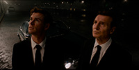 Так что с такой командой "повторения банкета" сделать бы не удалось уже по определению. Перезагружать было необходимо, получилось немного сумбурно, да и всякие псевдонаучные условности режут глаз куда сильнее, чем 20 лет назад, но в целом вышло бодро, динамично, красочно и остроумно. Что-что, а зрелищный и разнообразный экшн Ф. Гари Грей снимать умеет, инопланетный бестиарий радует количеством и многообразием форм, прикольных гаджетов стало еще больше, ну и расширение географии событий далеко за пределы США также пошло на пользу. С верностью канонам, преемственностью образов героев и самоиронией тоже всё в порядке. Да и большинство зрелищных сцен происходит при свете дня и снято твердо стоящим на ногах оператором без обилия крупных планов, что не может не радовать – старая формула «Нам нужны пушки побольше» всё ещё работает на ура. Лиам Нисон же, будучи всего на 5 лет моложе Томми Ли Джонса, находится в несоизмеримо лучшей актёрской и физической форме. Даже Тора классно обстебали в одном моменте.