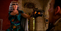 Тесса свою Молли отыгрывает старательно, но сценарный материал - ниже плинтуса, поэтому и ее персонаж никаких особых эмоций не вызывает. Вот в "Торе 3" она была боевая тетка, причем еще и с симпатичной чисто человеческой чертой - алкоголизмом. А здесь она совершенно стерильная. С детства хотела сражаться с инопланетянами и в кол-центре научилась стрелять, драться и вышивать на пяльцах - ага, ага.
