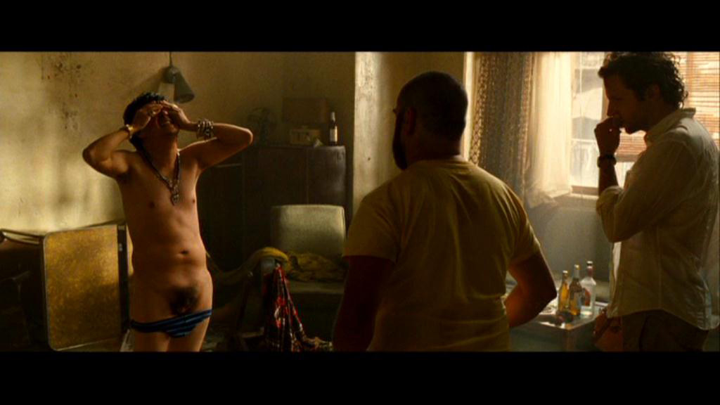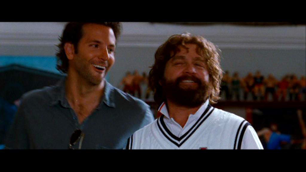 Главная троица смотрится очень средненько. Галифианакис делает все что можно, и его персонажу принадлежит пара-тройка неплохих шуток в картине. Брэдли Купер старается - у него гонорар поднялся во много раз, парень вышел в звезды. Эд Хелмс - истерит и временами жутко переигрывает.