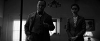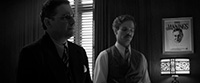 И это, конечно же, не просто никак не скрывается, а наоборот - всячески подчеркивается: оператор данного фильма Эрик Мессершмидт (по поводу его фамилии попытались сострить 325 критиков, но я не критик, поэтому до такого опускаться не буду), конечно же, использовал определенные операторские приемы гениального оператора "Гражданина Кейна" Грегга Толанда, который для "Кейна" находил и совершенно удивительные ракурсы (одни герои показывались с верхних точек, другие, наоборот, с нижних, причем чуть ли не от пола), и совершенно удивительные приемы: он экспериментировал с широкоугольными объективами, создавая многослойные и многоплановые кадры. Кстати, Мессершмидт работал и над прекрасным финчеровским сериалом "Охотник за разумом", и над другими сериалами, уже не финчеровскими, - "Фарго" и "Воспитанные волками".