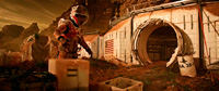Во время перехода команды к взлетной площадке случилось происшествие: сильный порыв ветра оторвал часть антенны, она попала в ученого-ботаника Марка Уотни (Мэтт Дэймон), в результате чего Марк упал, скатился с небольшого холма вниз и пропал.