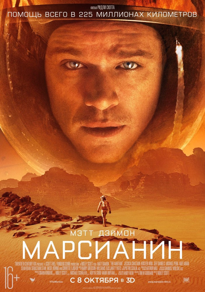 Но надо сказать, что Ридли Скотт с задачей экранизации справился хорошо: фильм, на мой взгляд, получился симпатичный, динамичный и смотреть за тем, как Марк один на один бьется с Марсом, а на Земле всякие неравнодушные люди ломают головы над тем, чтобы ему помочь, тоже очень увлекательно.