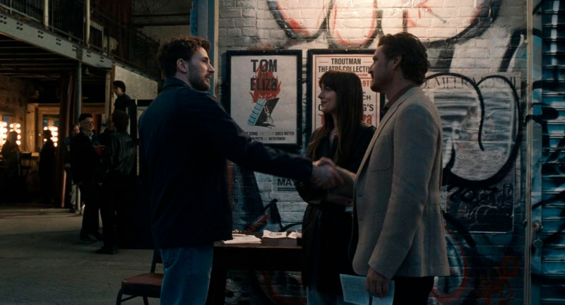 Постановка - очень хорошая, Селин Сон это умеет. Эффектный и очень разный Нью-Йорк, красивые интерьеры, в которых герои ведут негромкие разговоры, классно сделанная сцена чужой свадьбы, на которую пробираются Люси с Джоном, очень хорошие, временами отличные диалоги - все-таки, как сценаристка Селин на голову выше своего мужа Джастина Куритцкеса, который писал сценарий к "Претендентам" (там и сам фильм, скажем честно, очень так себе).