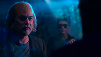 ...а тут какой-то дёрганый словоохотливый фрик с недержанием речи и явными нарушениями логики, который похоже имеет бурную жизнь вне съемочной площадки, а потому очень спешит поскорее оттарабанить роль и убежать из кадра.