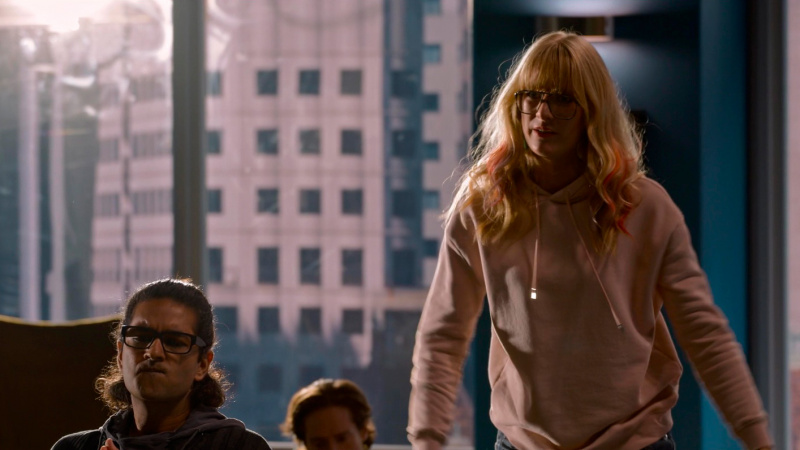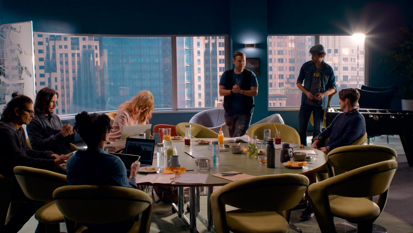 Фильм удивительным образом превращает в отдельную самостоятельную сценарную силу. В фильме проглядывает здоровый и даже смелый для нынешнего нестабильного кинобизнеса самоуничижительный юмор, высмеивающий корпоративную культуру и зло капитализма.