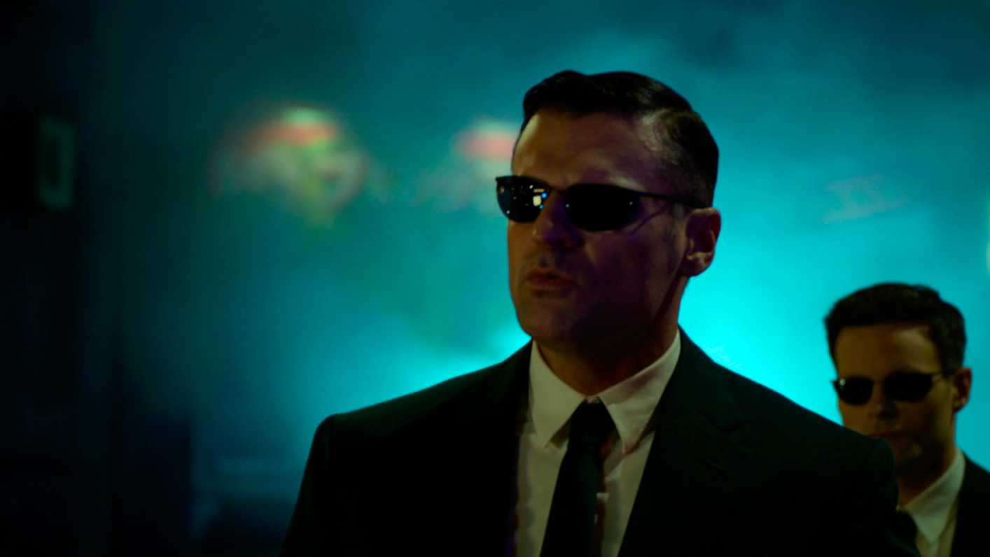 Джонатан Грофф из "Охотника за разумом" (разумеется, хохма на эту тему прозвучала) удостоился роли агента Смита (Хьюго Уивинга, кстати, звали, но у него не совпало расписание) с предельно невнятной мотивацией: Грофф, кстати, сыграл хорошо, хотя сам персонаж был совершенно невнятный.