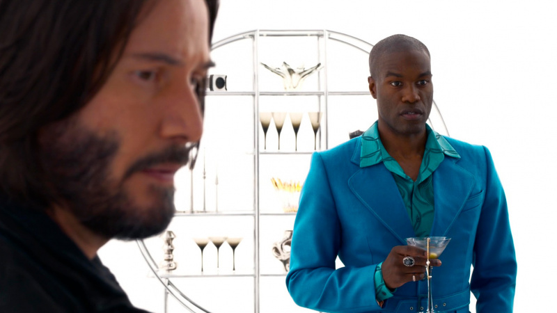 Яхья Абдул-Матин II в роли Морфеуса выглядел прямо-таки эффектно, и это как раз было хорошее решение: не Фишберна же сюда было тащить, тем более он с Ривзом старательно отработал на втором и третьем Уике, а кроме того, Фишберн давно уже толком не помещается в экран. А Яхья Абдул-Матин II - бодр, подтянут, обладает определенной самоиронией и даже ухитряется неплохо выглядеть в тех попугайских костюмах, в которые его непонятно зачем тут облачили.