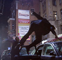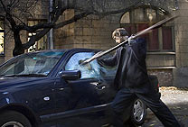 Ну бог с ней, с фантастикой, что там насчет триллера? С триллером все тоже как-то тухло. Впрочем, постановщики постарались картину накровавить по полной программе, так что временами это даже смахивает на какой-нибудь трешак "Маньяк с бензопилой из Милуоки": вспоротые животы со всякими внутренностями, разрезанные пополам люди, отрезанные конечности, оттяпанные бокорезами пальцы, реки крови из-под дверей милицейского автозака - всего этого в картине вполне достаточно. Но как-то, пардон, не цепляет. Даже эффектные кадры уделанных Меченосцем лютых уголовников - вот как-то не радуют глаз, честное слово, а уж реки крови из товарищей милиционеров, которые всего-то сопровождали парня в другую кутузку, - нам с котом Бубликом их было пронзительно жалко, хоть нас режьте пополам!