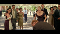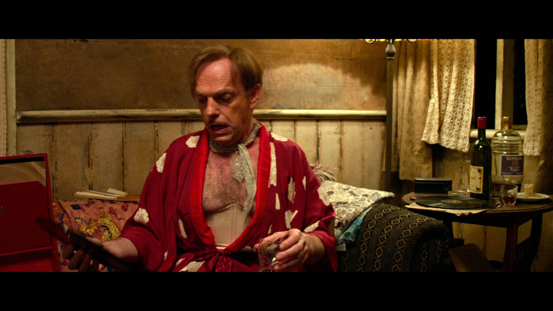 Чисто визуально начинался фильм очень ярко и эффектно: сочные кадры захудалого городка, ярчайшее светлое пятно в виде Тилли в невероятном красном платье, полусумасшедшая мамаша Тилли, которая выглядела колоритно и забавно, - ну и по жанру это все было скорее трагикомедия, нежели драма.