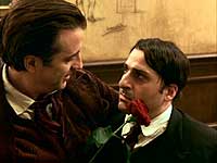Впрочем, врать не буду, Дэвис, слава богу, уж не настолько изуродовал фильм об Амедео, как в случае с Гудини. Но вторая половина фильма резко покатилась под откос, и это очень и очень печально. Потому что Энди Гарсиа в роли Амедео - великолепен. Пожалуй, он даже искупает многие огрехи картины. Гарсиа блестяще играет Амедео, и очень жаль, что постановка не слишком сильна. Особенно жаль, что диалоги к фильму писал сам Дэвис, а не какой-нибудь профессиональный автор диалогов. Диалоги - это самое ужасное, что есть в фильме. Плоские, фальшивые, вычурные и неестественные. Вся любовь: "Я тебя люблю, я тебя люблю, я тебя люблю очень сильно". Все страдания: "У меня ничего нет, детка, у меня вообще ничего нет. Совсем ничего". Все волевые решения: "У меня нет выбора. У меня нет другого варианта". Вот и все.