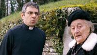 Здесь же не то чтобы совершенно другой типаж - все-таки физиономия Эткинсона совершенно уникальна, - однако в образе викария мистер Бин не прослеживается никак: нет ни фирменных ухмылок и улыбок, ни аналогичного дуракаваляния. Классический недотепа-викарий: рассеянный, смешной, стеснительный, но в то же время - обаятельный. У кого-то из рецензентов я встретил фразу о том, что, мол, Эткинсон сам не знает, кого ему тут изображать, - я тут не подпишусь ни под одной буквой. Вполне цельная роль и сыграна, на мой взгляд, очень хорошо.