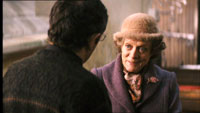 Легендарная Мэгги Смит (она сыграла почти в шестидесяти фильмах) выступила в роли почтенной домоправительницы - по совместительству убийцы. Старушка получилась что надо: с сочувствующим и слегка виноватым выражением лица, при этом с лопатой или сковородкой в руке - чтобы вовремя нанести решающий удар. А уж ее беседа с Лэнсом по телефону...