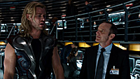 Как ни странно, поймать Локи и притащить его на корабль Фьюри оказалось довольно просто: правда, этому несколько мешал брат Локи Тор (Крис Хемсуорт), который прилетел с Асгарда, чтобы в очередной раз защитить Землю от своих родственничков и отправить Локи под домашний арест. Но Фьюри опасается, что Локи не просто так дал себя заточить в клетку, которую первоначально готовили для Халка. Этот Локи - он явно что-то задумал. Вон какая у него рожа хитрющая!