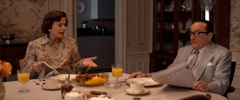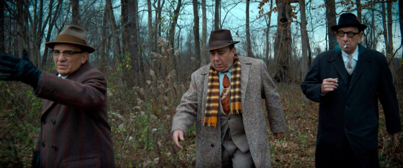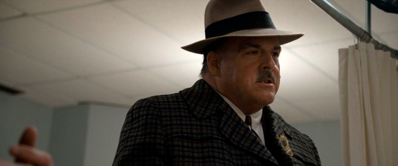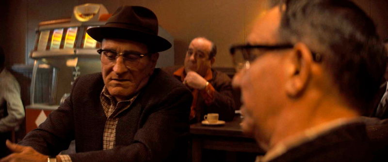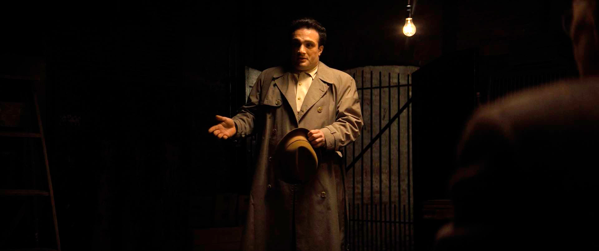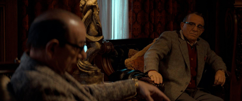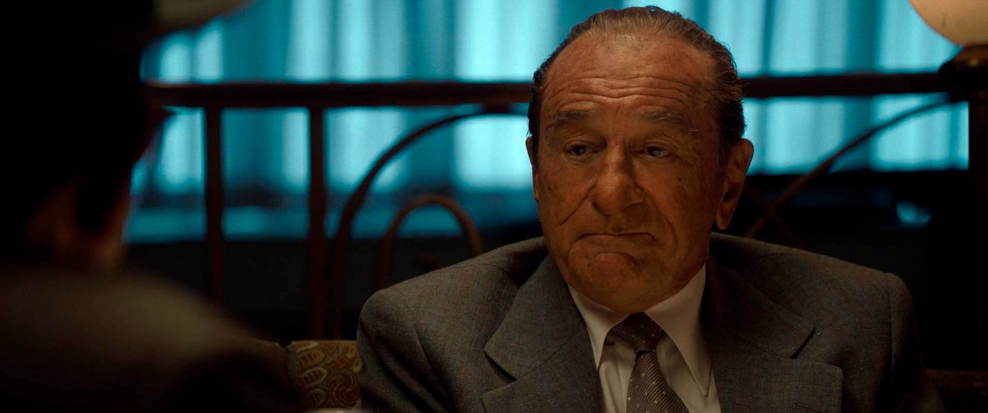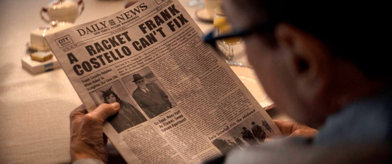 Также во время просмотра очень влияло то, что за каждым из них был виден только Роберт Де Ниро, причем не Роберт Де Ниро времен, например, "Крестного отца 2", а Роберт Де Ниро времен того же "Ирландца". Он, конечно, старается изображать разные характеры - Костелло у него достаточно сдержан, а Дженовезе материт всех кругом, - но все равно же хорошо видно, что это один человек, и я не нашел ни одного довода в пользу того, зачем вообще такое сотворил постановщик. Да и грим что Костелло, что Дженовезе смотрится достаточно неестественно.
