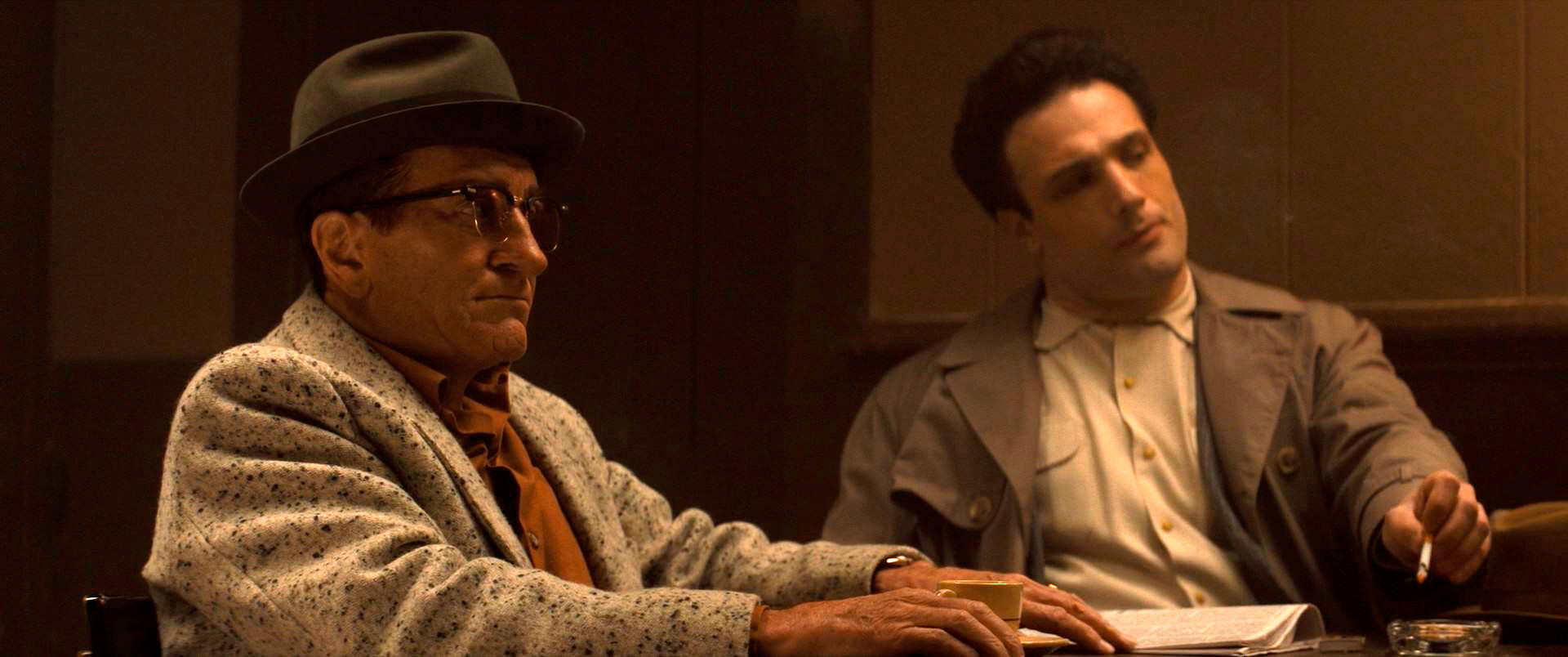 Честно говоря, когда я начинал этот фильм смотреть, то не знал, что обоих персонажей играет Де Ниро. Я сначала посчитал, что на роль Дженовезе Левинсон позвал какого-то актера, сильно похожего на Де Ниро, и там разобраться, где Вито, и где Фрэнк, было довольно сложно. Хорошо еще, что я читал много документальной литературы о тех временах, и мог по косвенным признакам определить, кто есть кто: ага, жена еврейка - это Фрэнк, ага, судится с женой - это Вито.