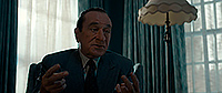 Также во время просмотра очень влияло то, что за каждым из них был виден только Роберт Де Ниро, причем не Роберт Де Ниро времен, например, "Крестного отца 2", а Роберт Де Ниро времен того же "Ирландца". Он, конечно, старается изображать разные характеры - Костелло у него достаточно сдержан, а Дженовезе материт всех кругом, - но все равно же хорошо видно, что это один человек, и я не нашел ни одного довода в пользу того, зачем вообще такое сотворил постановщик. Да и грим что Костелло, что Дженовезе смотрится достаточно неестественно.