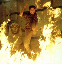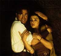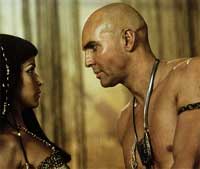 И Рику с Эвелин, разумеется, пришлось отправляться выручать сыночка, потому что браслет, как вы понимаете, золотой и стоит немалых денег. Ну тут и пошло-поехало: приключения, драки-мраки, негодяйства Имхотепа и все такое. Я думал, что Рик скоро переломится от всех этих сражений (шутка ли, ведь он практически один бьется со всей этой нечистью), однако в этой серии Эвелин неожиданно оказала ему ощутимую помощь, перестала бегать по углам пронзительно визжа, как будто вместо обычной ожившей мумии она увидела мышь. Дело в том, что Эвелин внезапно вспомнила свою прошлую ипостась. Да-да, в прошлой жизни она была самой Нефертити - дочерью фараона, которому зловредный Имхотеп воткнул перо под ребро. Поскольку Анк-Су-Намун должна была стать женой фараона, а вместо этого предпочла любовь бритоголового, но симпатичного Имхотепа, она еще с тех времен недолюбливает Эвелин. Поэтому тетки в этой серии несколько раз встречаются для таких захватывающих поединков, которые живо напомнили мне играющих в прятки "Тигров и Драконов", разве что тетки при этом по стенам не бегали. Зато по стенам бегали ожившие древние воины, придавая должный колорит сценам восточных единоборств.