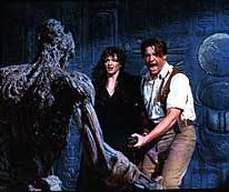 Разумеется, Имхотеп не сам выбрался из-под земли, где он лежал, представляя собой оплавленный минерал. И не геологи его выковыряли на поверхность, а хранитель британского музея вместе с симпатичной теткой, которая почему-то называет себя новым воплощением Анк-Су-Намун. Вот тут, конечно, есть определенная непонятность. Почему Анк-Су-Намун, которая в прошлой серии представляла собой мумию довольно отвратного вида, вдруг воплотилась в симпатичной тетке (ее играет весьма колоритная дама - Патриция Веласкес), а Имхотеп так и остался валяться под землей? Почему Имхотеп не воплотился в какого-нибудь мужичка посимпатичнее, и тогда Анке не пришлось бы выковыривать из-под земли это отталкивающее создание? Впрочем, мое дело не задавать вопросы, а констатировать факты, поэтому продолжаем...