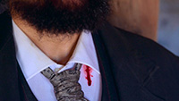 После обеда вся компания возвращается в офис шерифа, где их ждут два детектива из агентства Пинкертона, которые собираются сопровождать Краули в Сант-Андрес, где его повесят. Однако у Саши-Вани вызывает некоторое подозрение тот факт, что у одного из детективов по рубашке стекает кровь, а второй детектив как-то очень нехорошо поигрывает ножом, и он понимает, что это - члены банды Краули.
