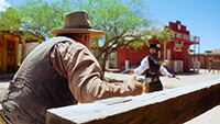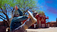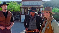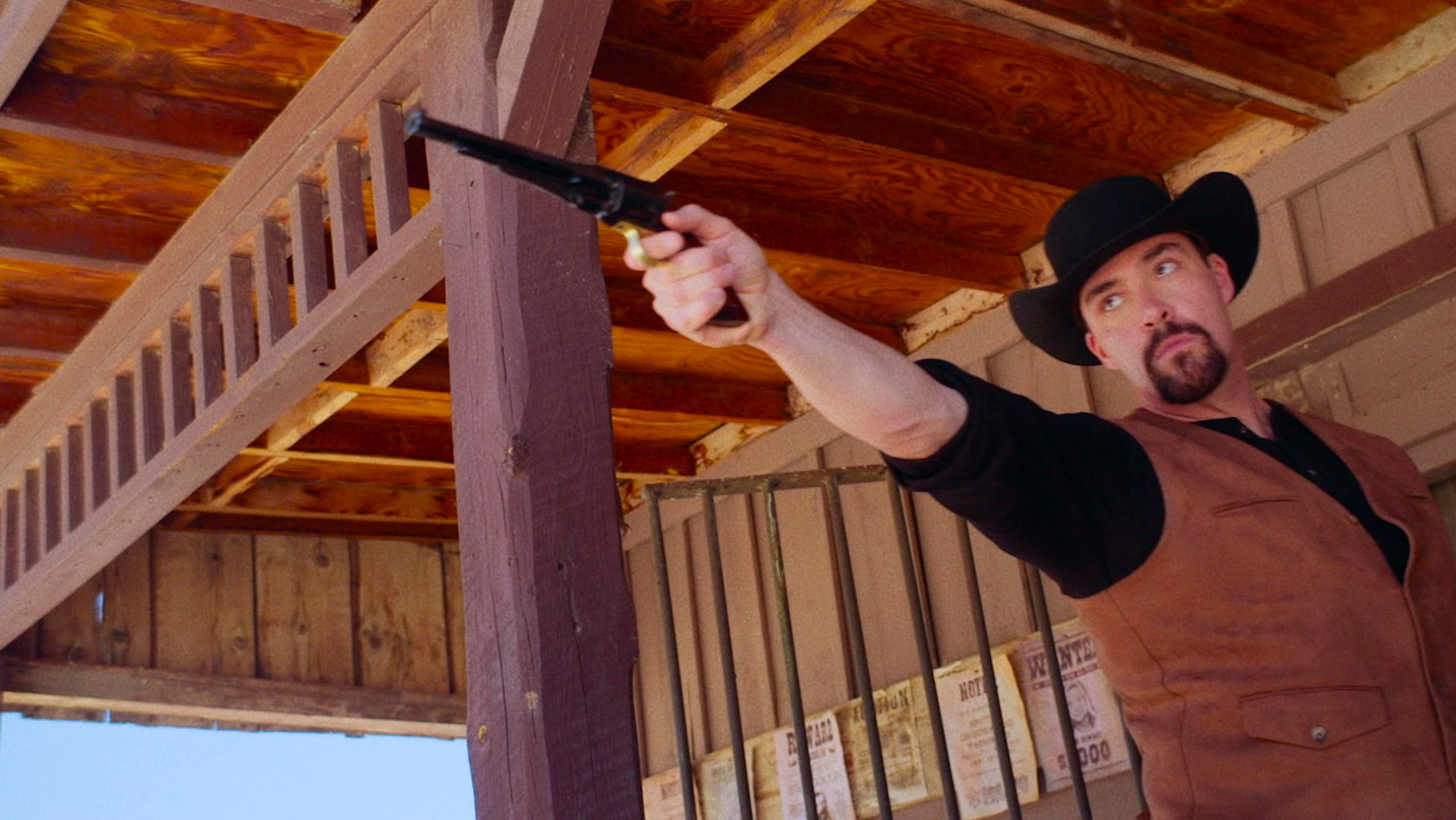 Саша в роли героя этой постановки думает, что косплеит Клинта Иствуда и Арнольда Шварценеггера, однако на самом деле он косплеит Курицина, которого облачили в дурацкий прикид "ковбой с дикого Запада" для вечеринки. Смотрится это откровенно убого и за Сашу, если честно, настолько неудобно, что даже издеваться над этим не тянет.