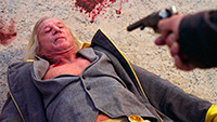 Затевалось это все, судя по всему, для перестрелок (фильм и называется "Перестрелка в Рио Браво", хотя никакой Рио Браво тут не фигурирует, а фигурирует Блайнд Чеппел), но как раз перестрелки выглядят предельно дешево и тупо: бравый Саша-Ваня выходит на площадь, окруженный пятью бандитами, они в него томительно стреляют, неминуемо промахиваясь, а русский неудержимый их методично отстреливает, причем каждый бандит обязательно падает в рапиде (достали, да), и из него лихим фонтанчиком вылетает компьютерная кровушка.