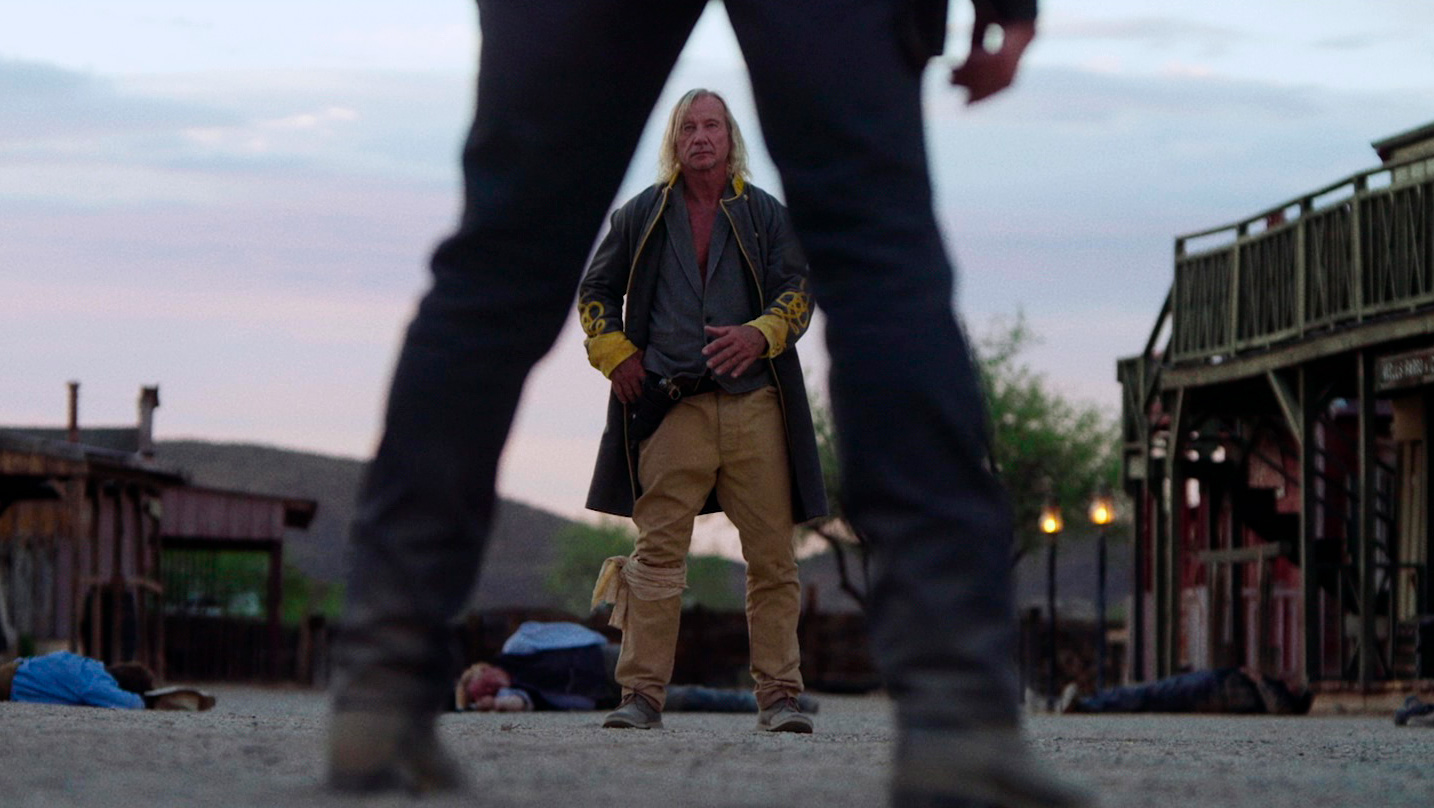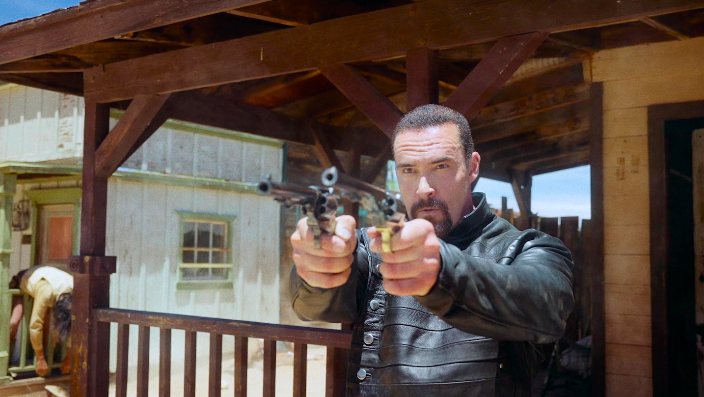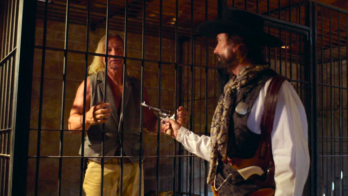 Но банде все равно нужно отбить своего вожака, поэтому они нападают на город. Все жители города попрятались в церкви, шериф с маршалом в офисе шерифа охраняют Краули, а банде будет противостоять Саша-Ваня, потому что он реально - русский неудержимый. И он ради такого дела даже достал свою байкерскую курточку, которая только и ждала этого важного момента.