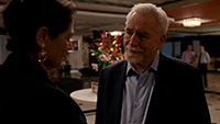 Брайан Кокс в роли Логана по-прежнему демонстрирует поистине шекспировские страсти, и его король Лир на современный американский манер великолепен совершенно. И это действительно выдающаяся роль: она была таковой в первых двух сезонах, она осталась таковой и здесь. Логан - потрясающий совершенно, причем в третьем сезоне он демонстрирует определенную готовность к каким-то компромиссам, потому что он понимает, что в новых обстоятельствах он уже не может переть напролом, как носорог. Одновременно здесь есть отличный эпизод, как Логан вытирает ноги об нынешнего президента Америки - это было очень забавно.