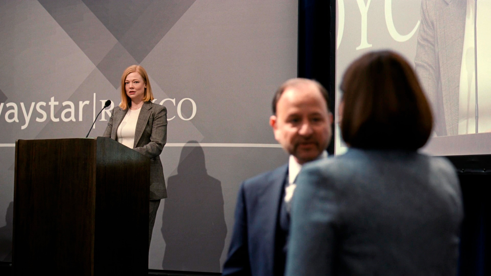 И второй сезон заканчивается тем, что на пресс-конференции в Нью-Йорке Кендалл, вместо того чтобы взять всю вину на себя, объявляет о том, что Логан Рой прекрасно знал о всех нарушениях и покрывал их, причем Кендалл предоставляет определенные доказательства, подтверждающие его слова.