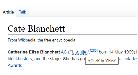 "The Australian Oscar winner, 42, pronounces her last name “Blanchit.” “My mother has this trouble in banks where if you say Blanchett, they put an ‘e’ on the end of it [Blanchette], and if you say Blanchett, they think you’re saying ‘Blanchard,’” she has said. (Parade Magazine - MAY 29, 2011)"