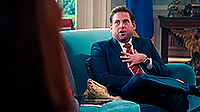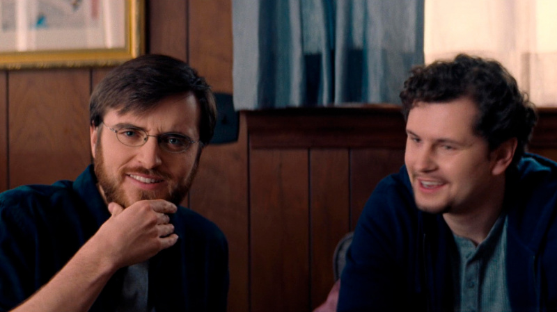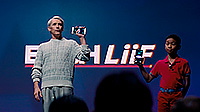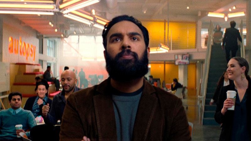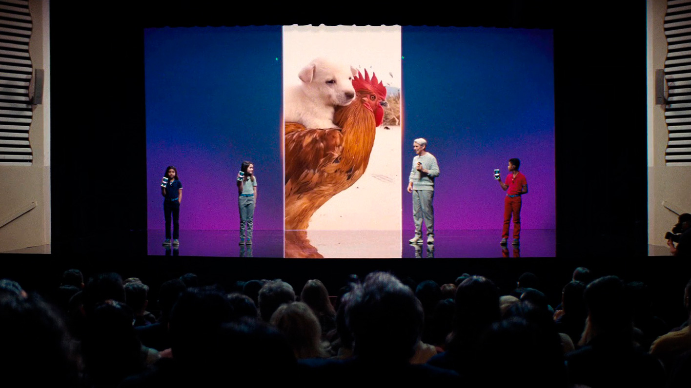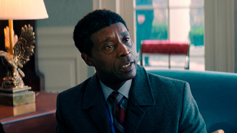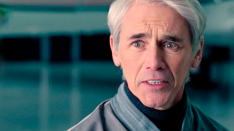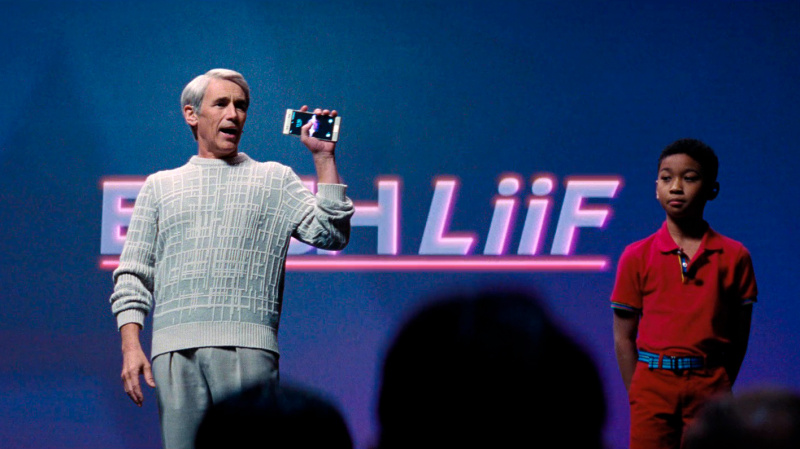 Марк Райлэнс (какой же он классный был в "Суде над чикагской семеркой") здесь изобразил некий собирательный образ из Тима Кука (прежде всего, и я в упор не понимаю, почему многие критики называют данного персонажа Стивом Джобсом), Ричарда Брэнсона и очень слегка Илона Маска (просто потому, что владелец самой могущественной ИТ-компании также имеет свои ракеты), но тут все-таки не было пародии на конкретного персонажа - это скорее образ некоего современного миллиардера, предстающего вроде как спасителем человечества, а на деле оказывающегося... ну, в общем, тем, чем они все в итоге оказываются. И надо отдать должное Марку Райлэнсу, изобразил он этого персонажа очень интересно, образ получился очень необычный. (Ну и презентацию для него сделали точно в духе подобных презентаций всех крупных компаний: от Apple до Samsung, Huawei и рыбешек поменьше.)
