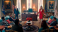 Президент принимает Тедди, Кейт и Рэндалла в Белом доме, однако на Джейн эти шокирующие новости не производят заметного впечатления: у нее через три недели парламентские выборы, она пытается пропихнуть в Верховный суд своего кандидата, вокруг которого разгорается секс-скандал, так что она не может сейчас позволить подняться дополнительной шумихе. Поэтому официальное решение президента США - "помалкивать и размышлять".