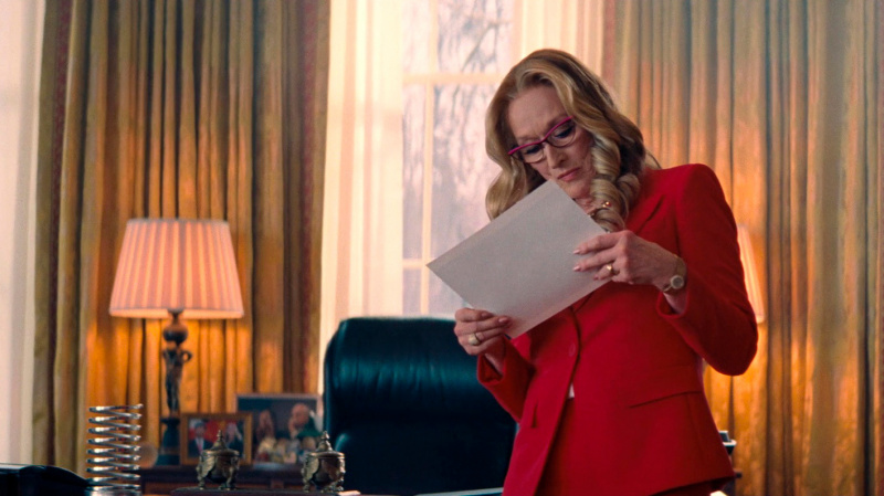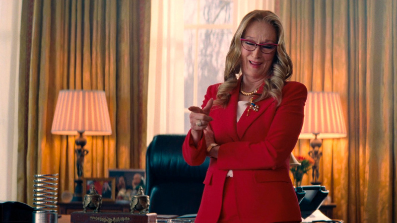 Мэрил Стрип - не менее замечательная и яркая актриса, и роль Джейн Орлин она сыграла с полной самоотдачей, причем наполнила ее отличной иронией. Ну да, Джейн Орлин - это скорее Трамп в облике Хилари Клинтон (парадоксально, да), причем там и сценарно все было придумано классно, и сыграно великолепно.