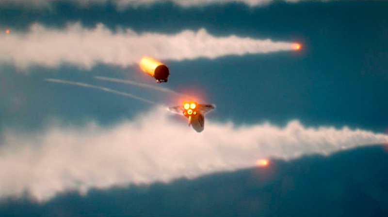 Весь сюжет (сюжет, а не типажи персонажей) висит на такой зыбкой вероятности именно показанного в фильме развития событий, что множит на ноль весь пафос. Не менее (и даже более) вероятен вариант, когда шаттлы с зарядом ничего не смогли сделать - см. выше, - а дроны прекрасно справились с задачей. И о чём тогда был бы фильм? О бессмысленности тупых салдофонских решений и гении технической мысли?